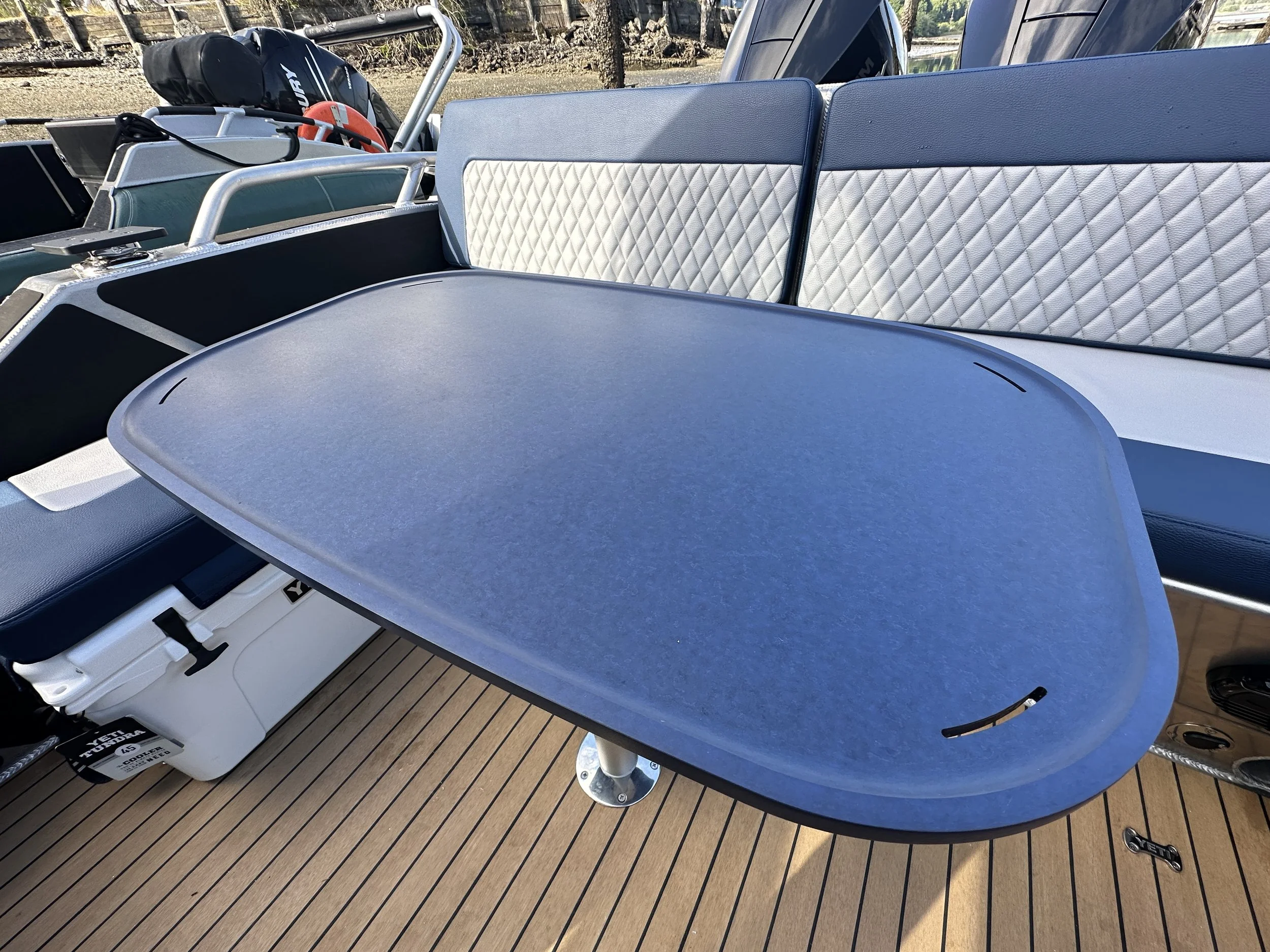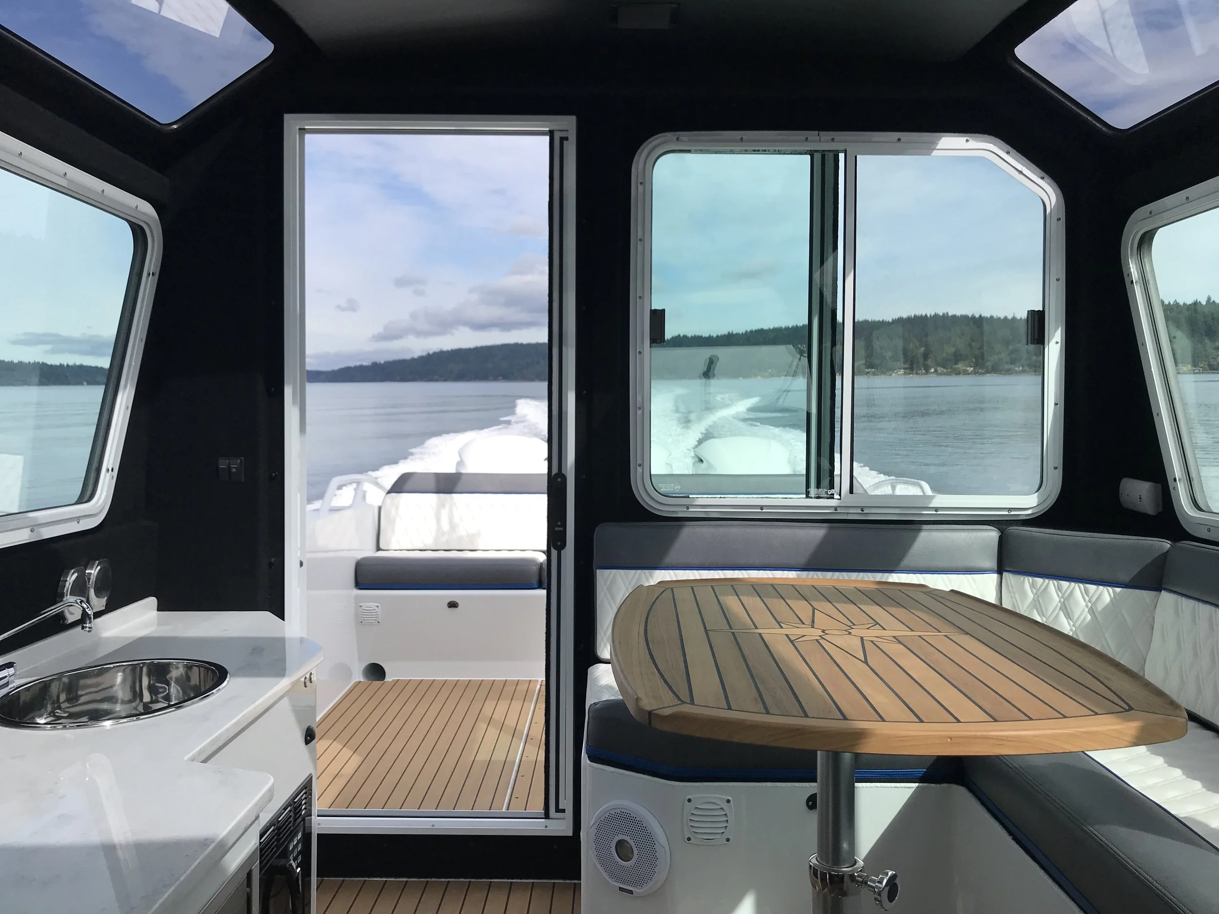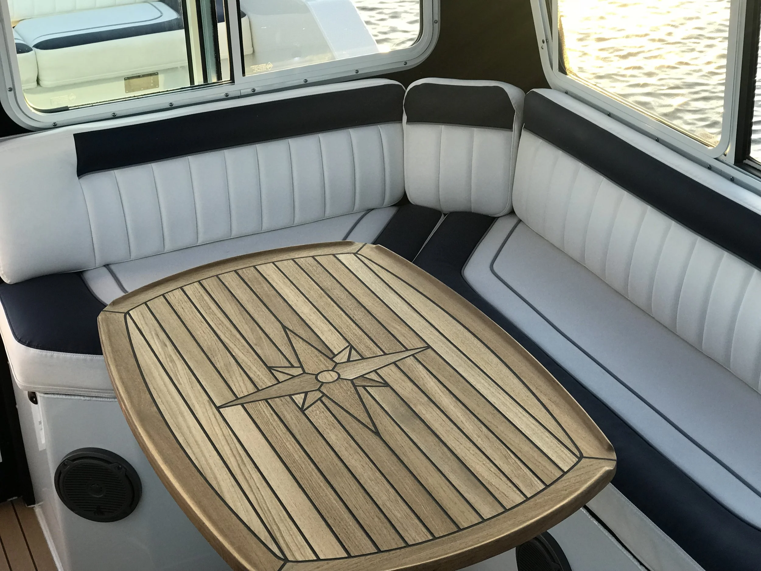 An increasing popular custom table option. An classy warm touch to your main cabin. Often these are selected