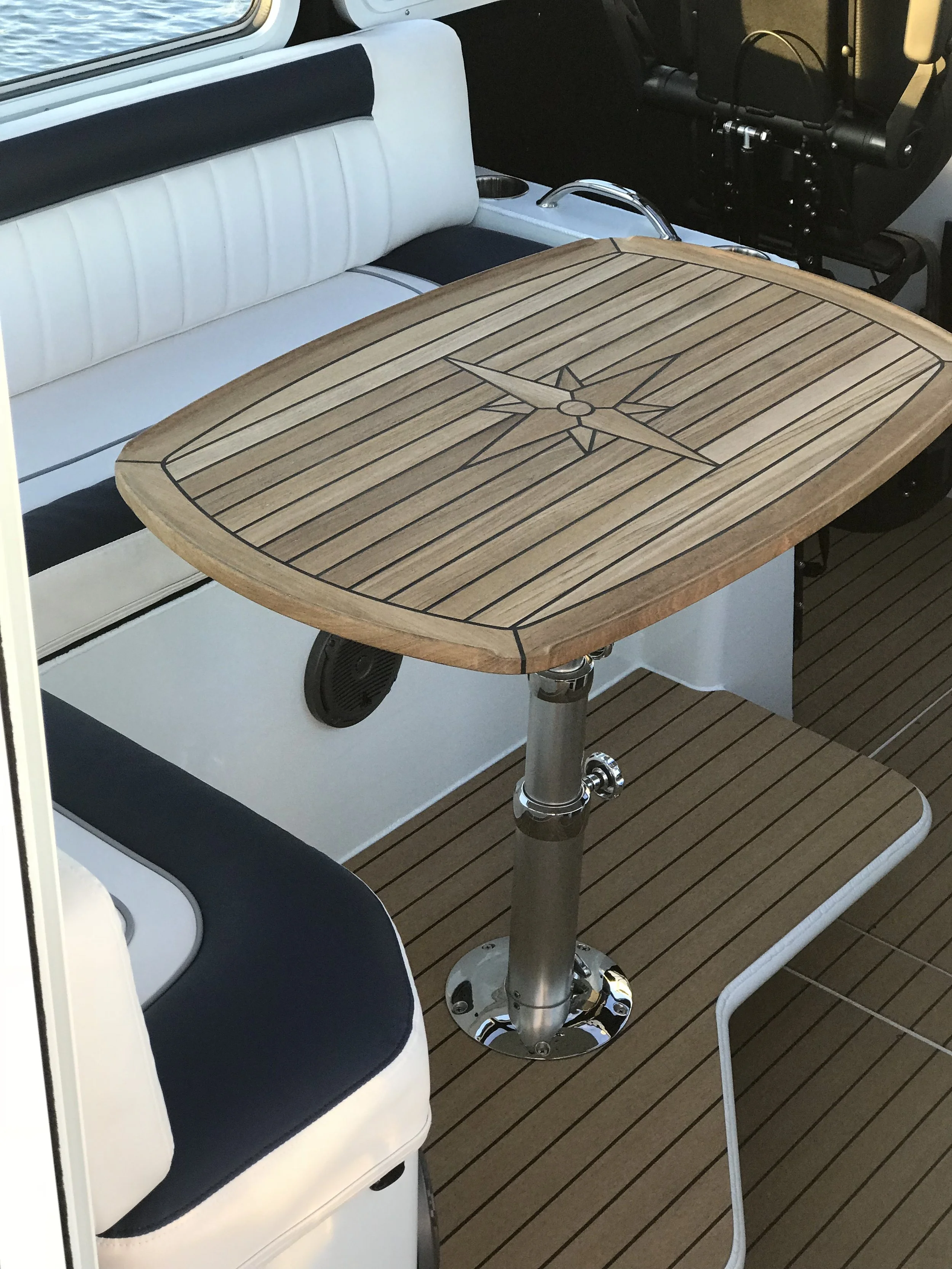 Teak and high end boats; a combination steeped in tradition. This is our most affordable table option, it can be used as a convertible sleeper table and/or as a roving table. Fortunately (if your 31ft or longer) this option is standard!