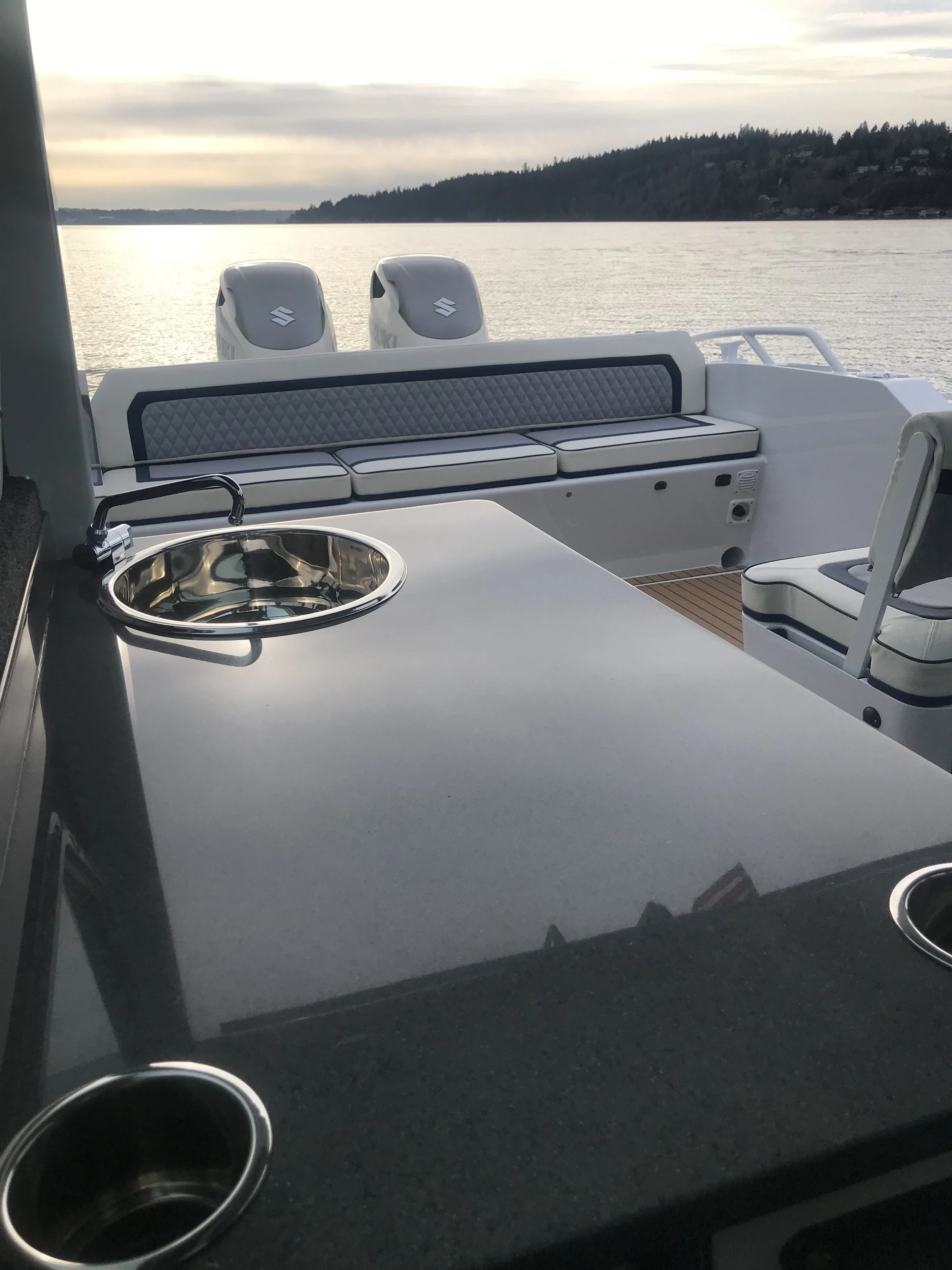 The durable Richlite material is made of condensed paper and comes in a couple colors and is great where small durable tables are needed, *we are able to order these to a custom size and can do them as the primary settee table as well! Just like the standard Teak Table option this table will need minimal treatment for it to stay in it’s best condition. Great in smaller boats with roving table (multiple location) options!