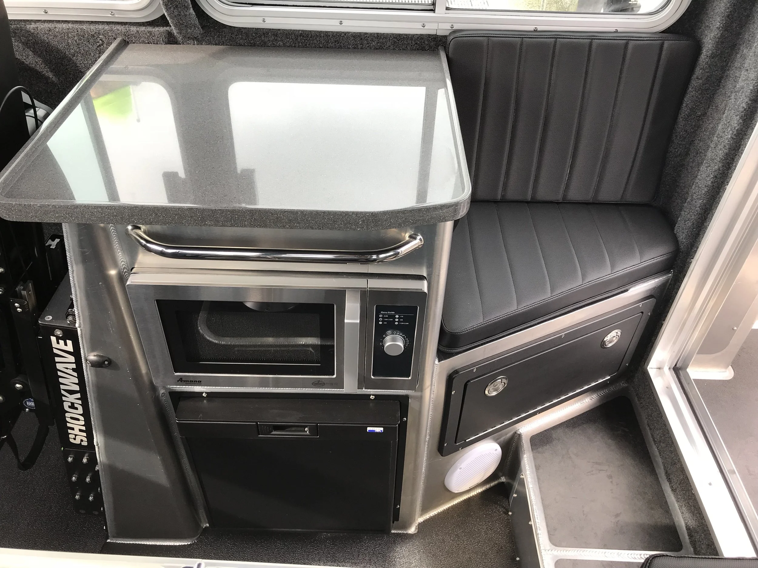 We offer Walnut as our custom matte table option, meaning the sizing is up to you! Often these are selected when the interior salon is also designed to convert into a sleeper. Walnut it known for its strength and grain, and offered here in the modern matte finish.