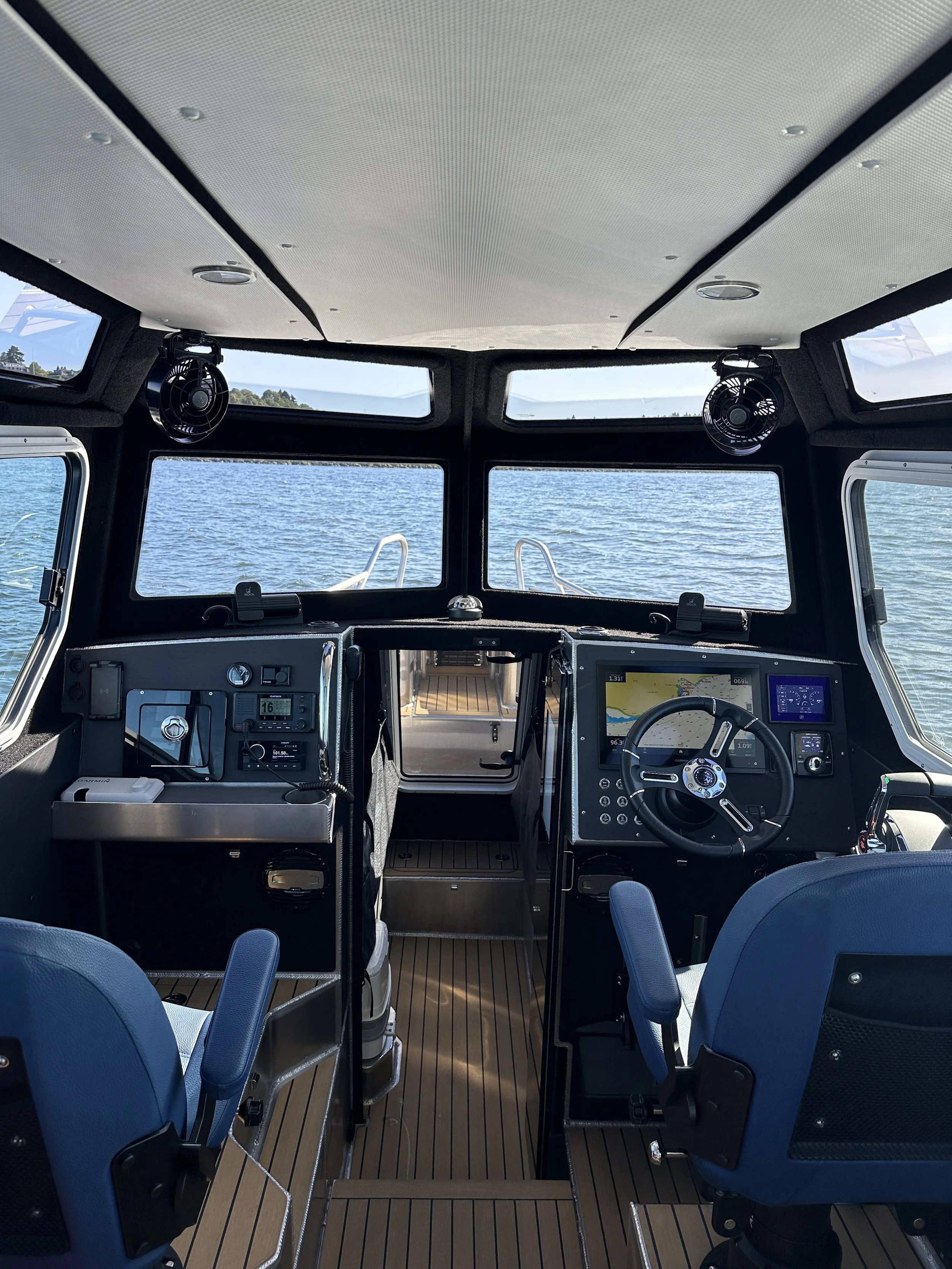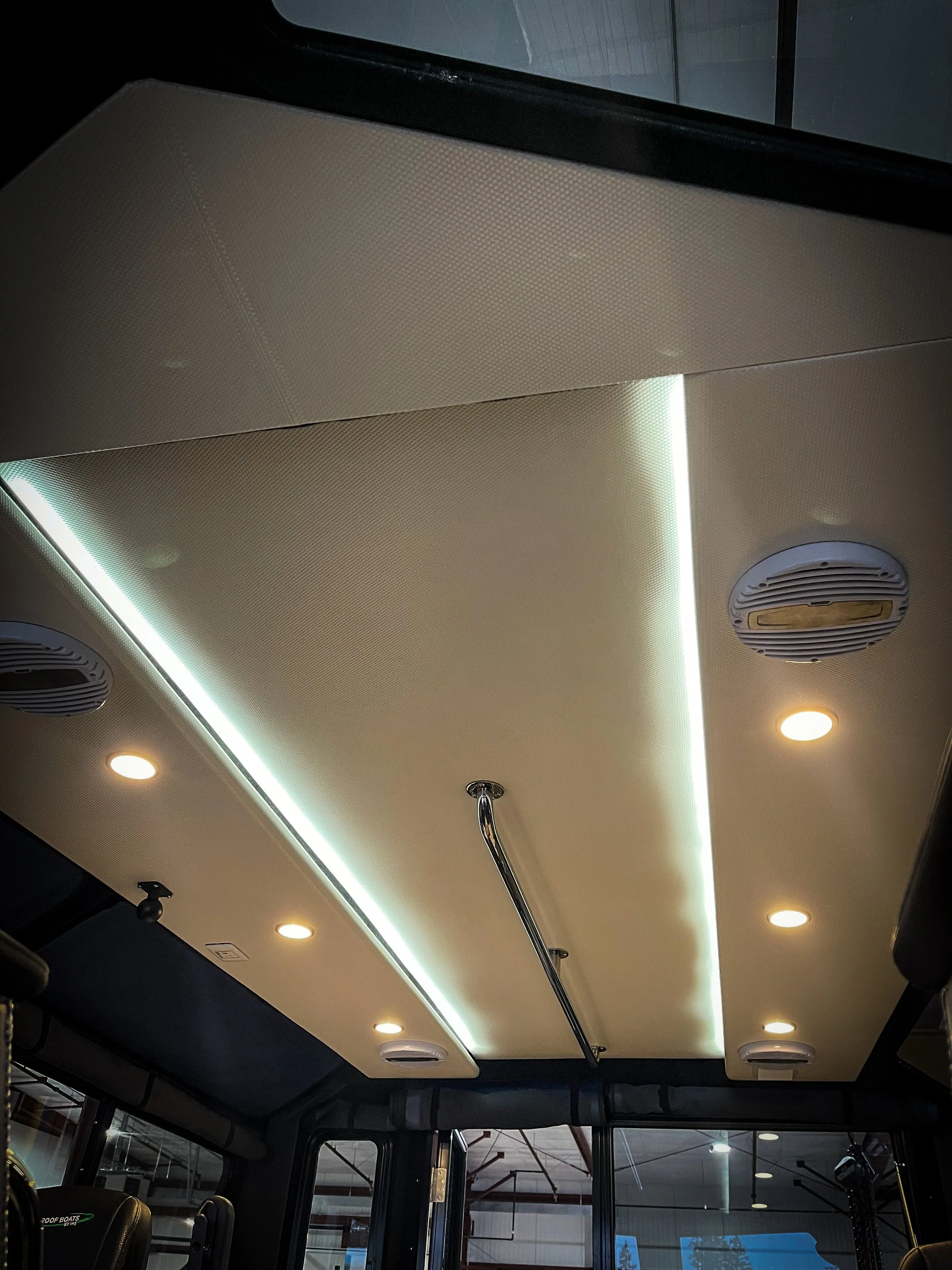 A fancy word for your vessel’s ceiling! We will typically default to match your headliner to the rest of your interior using black, white or grey or silver, perforated or solid vinyl. Should you be interested in any specific customizations you see, please let us know as soon as possible.